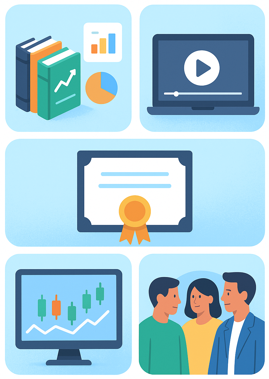 Receive an industry-recognized certificate that validates your skills and boosts your credibility as a trader or investor.